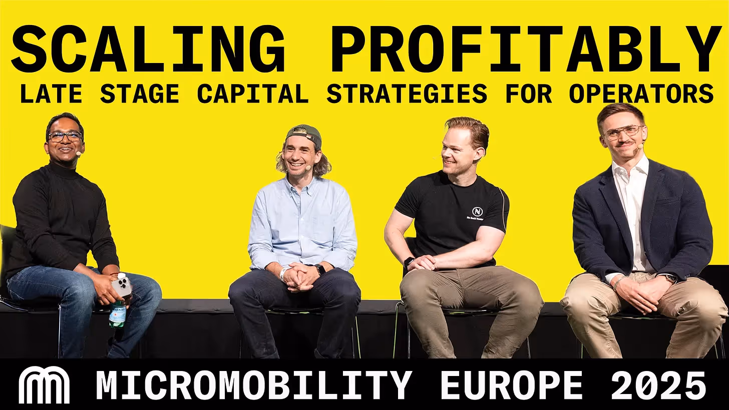 In this Micromobility Europe 2025 panel, Prabin Joel Jones moderates a candid discussion with Paul Adrien Cormerais (Pony), Thijn van Helvoirt (No Such Ventures), and Pierre Leydier (Smart Lenders Asset Management) on how micromobility operators can scale profitably in a tight capital market.