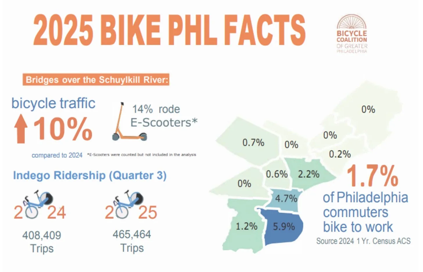 In the US, Philadelphia’s bike ridership continued to grow in 2025, with bicycle traffic up 10% year-on-year across key bridges over the Schuylkill River. Indego trips rose to 465.4k in Q3 2025, up from 408.4k in Q3 2024, highlighting stronger bike-share usage. Overall, 1.7% of Philadelphia commuters now bike to work, reinforcing cycling’s role in daily mobility. During the state transportation authority’s service cuts, cycling proved resilient, with weekly Indego trips peaking above 41k.