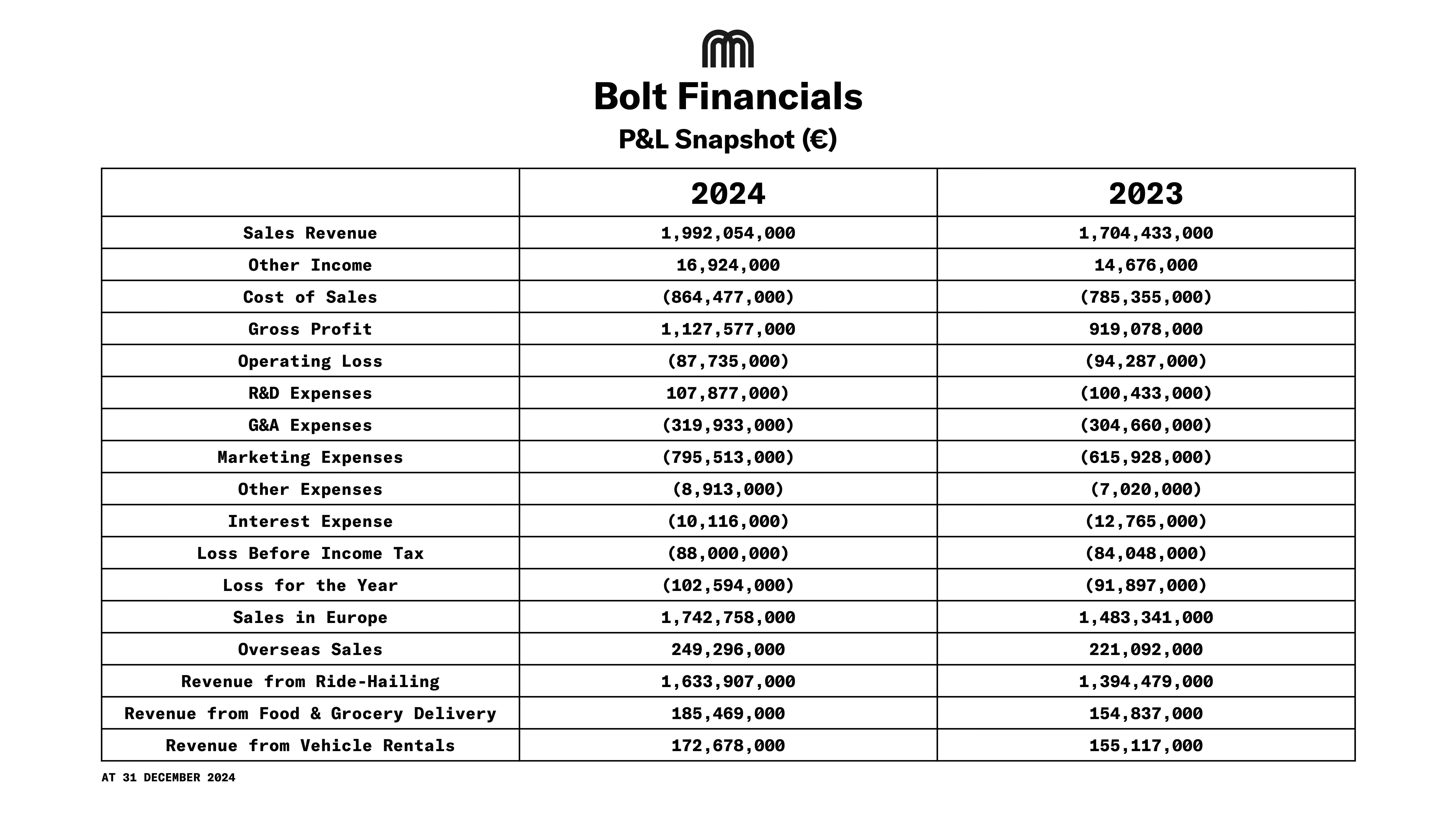 Bolt’s accumulated losses stand at ~€1B at the end of 2024.