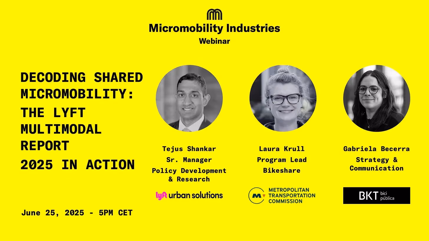 Go beyond the numbers and hear the stories behind the data. Join a panel of experts from Lyft Urban Solutions, MTC, and BKT bici pública for a dynamic webinar that seamlessly integrates data-driven insights from the latest Lyft Multimodal Report with invaluable real world experience from systems in the San Francisco Bay Area, Guadalajara, and Mexico City.