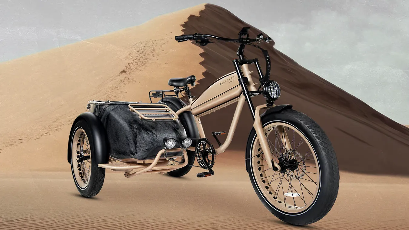 MOD Bikes steps back in time with the Easy Sidecar Sahara e-bike, inspired by the 1940s BMW R 75 Sahara. Along with the iconic design, the Sahara is equipped with a dual crown suspension fork, additional headlights, and an easy access door on the sidecar for four-legged friends.
