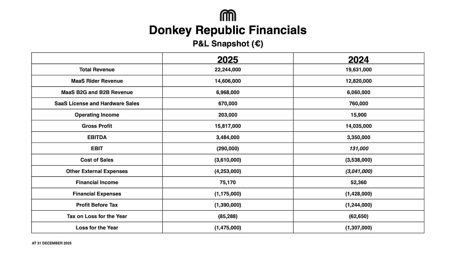 - MaaS Rider Revenue: €14.61m, representing 65.7% of total revenue, up 14% YoY.