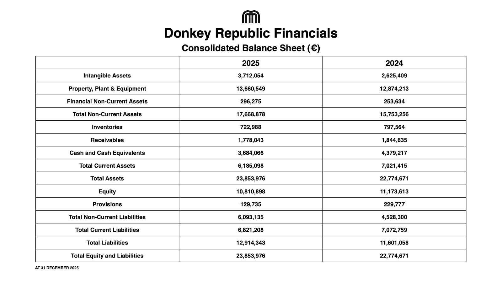 Total assets grew to €23.85m, driven largely by the capitalization of development costs for the new Gen4-bike platform.