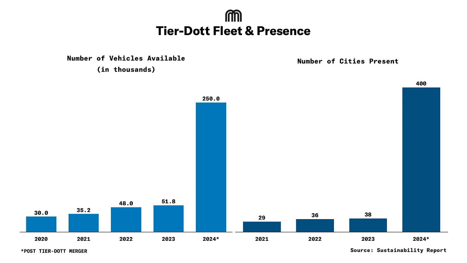 In 2024 alone, Tier-Dott completed 100m rides from 10m riders. Following the merger, Dott’s presence expanded significantly, reaching 400 cities.