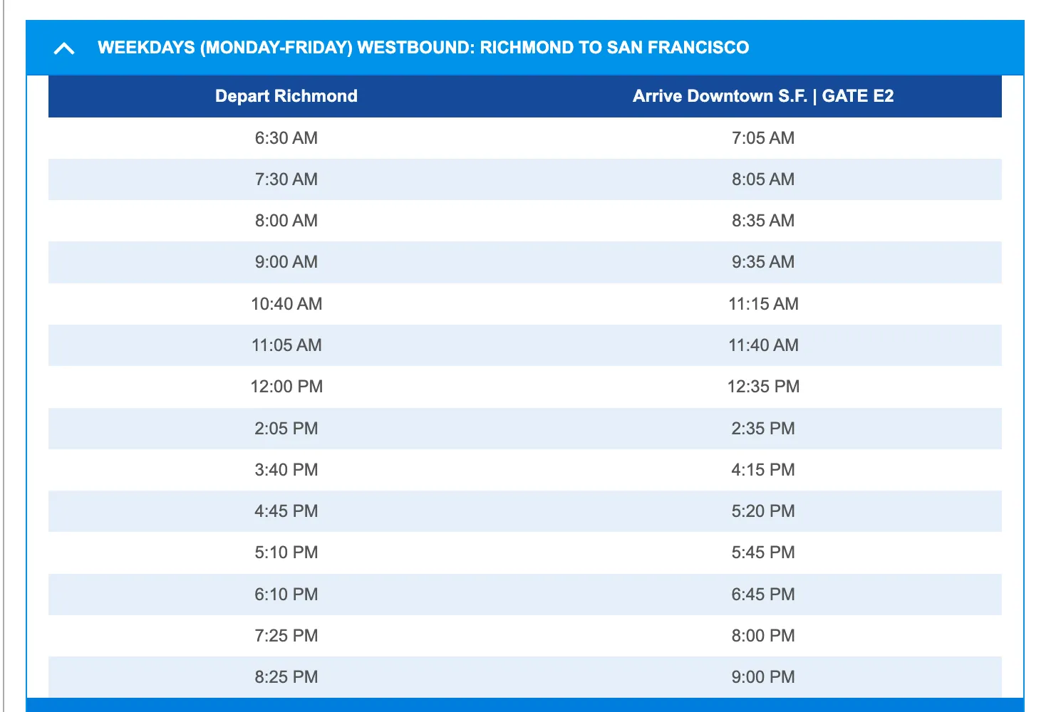 - By Ferry (Recommended, fastest way): use the Richmond ferry from San Francisco Ferry terminal, Gate E2. Nearest BART stop is Embarcadero. The main main ferry leaves at 8:15AM. (For later options, see schedule here.) Please plan to arrive at the ferry gate 10 minutes early. Tickets are available on the ferry for for $4.60. If you are paying with cash or card, you can pay onboard the ferry. More about the Fares. Travel time is about 30 min. You will disembark immediately next to our event venue. Please note that ferry capacity is 230 persons and 34 bikes. First come, first serve.