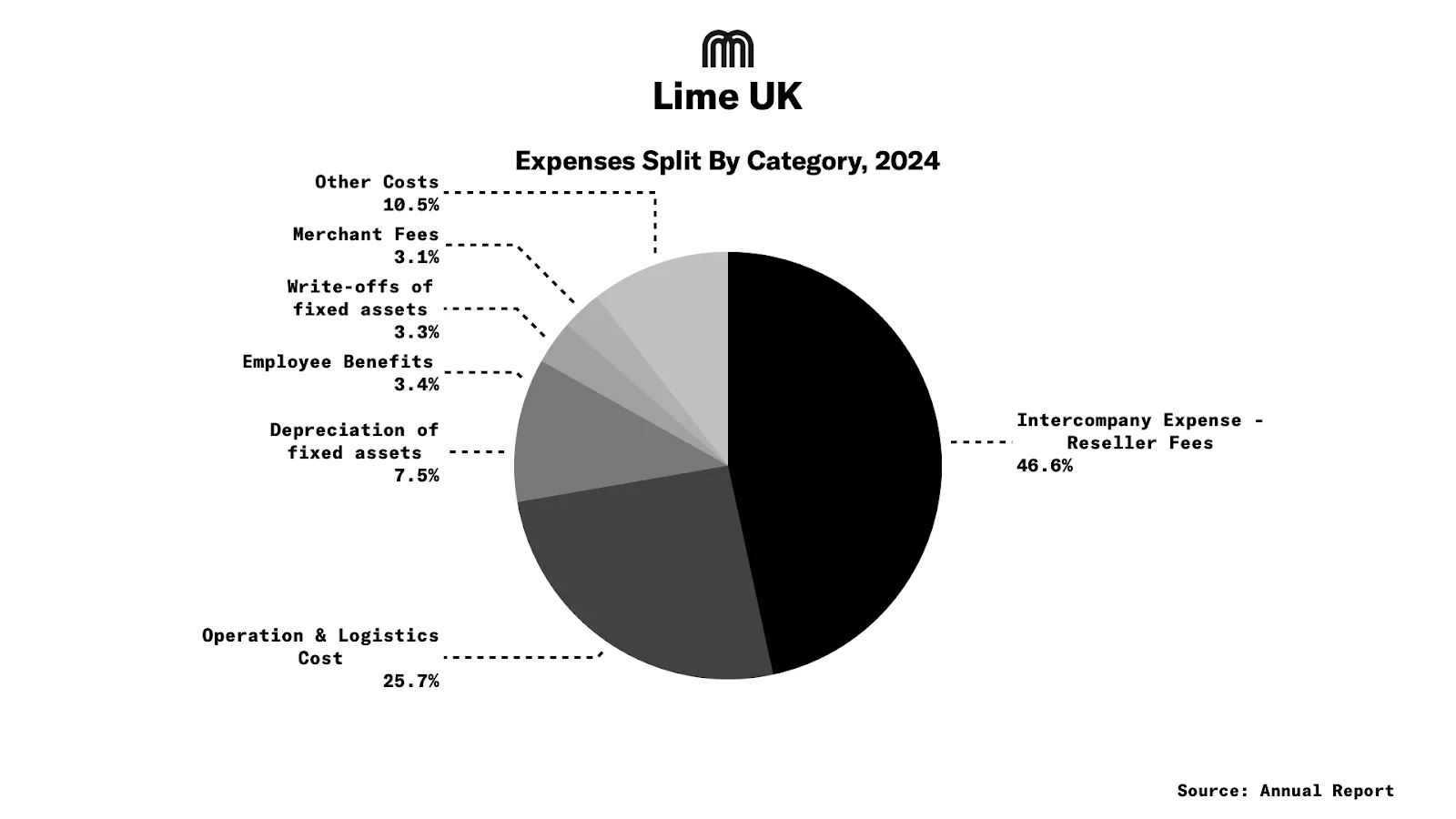Reseller fees represented the largest share of Lime UK’s operating costs in 2024 at 46%, followed by operational expenses at 25.7%. The company employed an average of 39 people, including directors.