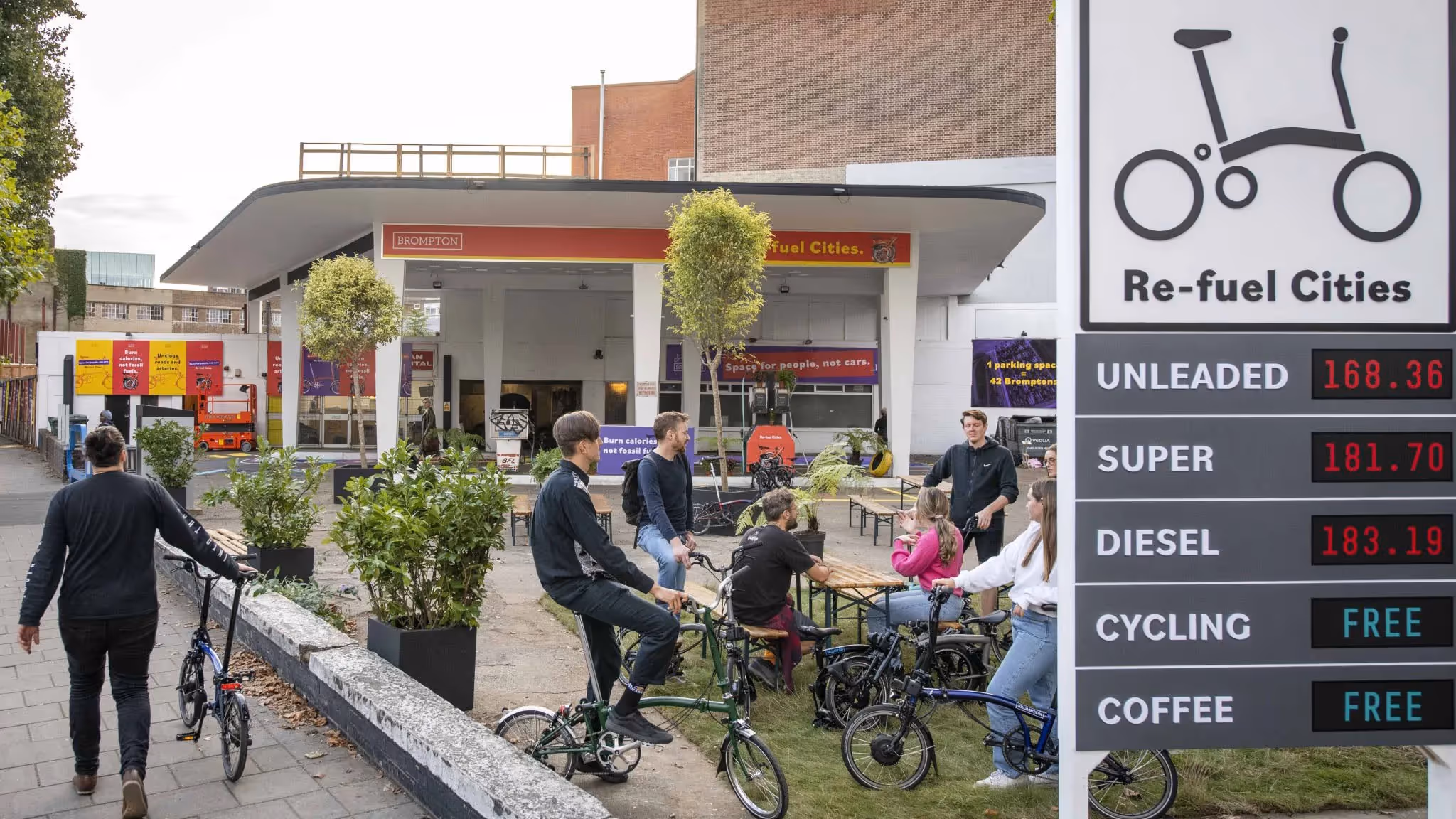 - Imagine if gas stations were micromobility transit hubs. Brompton Bike Hire made that vision a reality when they converted a gas station into an ebike transport hub on World Car-Free Day.