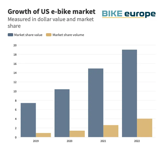 Likewise, in the U.S., electric bikes are defying the bike downturn and outselling electric cars. Last year ebike sales exceeded 1M units, making up 19% of the total bike market sales dollars. (And it’s important to note, these numbers typically exclude online sales.)