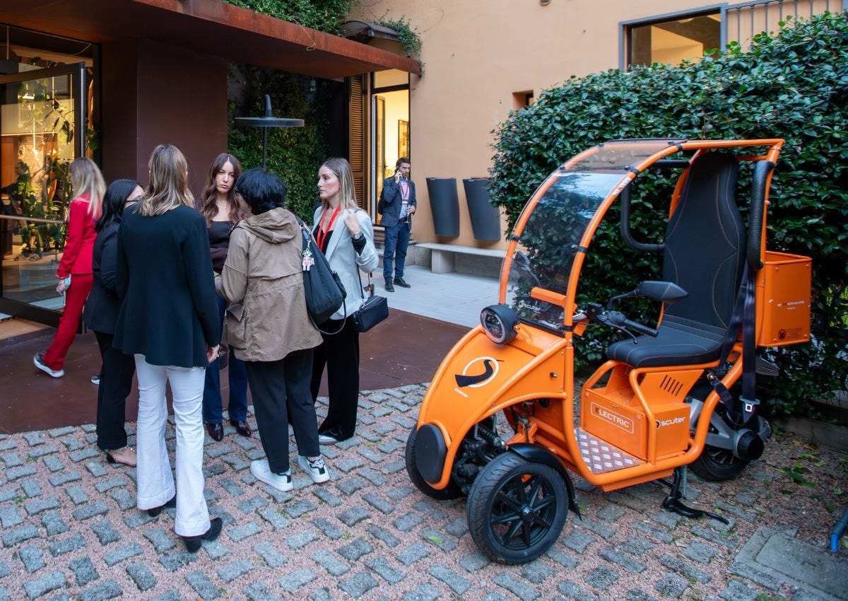 A new shared mobility service named Scuter will debut in Milan on November 7, introducing a fleet of fully electric, three-wheeled scooters. The Italian-designed vehicles feature an integrated cover and seat belt, eliminating the need for a helmet, and offer a range of up to 100 km. The service will gradually expand to 200 vehicles and is offering €500k in promotional vouchers to early users. The company aims to reduce urban congestion by providing a compact alternative to private cars, estimating that 10k Scuters could free up over 500k square meters of city space.