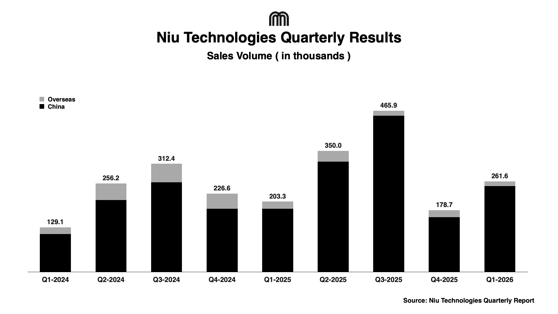 Niu Technologies reported strong Q1 2026 sales, delivering 261.6k units globally, marking a 29% year-on-year increase. The growth was heavily driven by the China market, where sales rose 35% to 247.9k units, powered by strong demand for models like the MT2026, which alone contributed nearly 30% of domestic sales. In contrast, international sales declined 32%, as the company shifts strategy to focus on higher-growth electric motorcycles and streamline its micromobility operations.