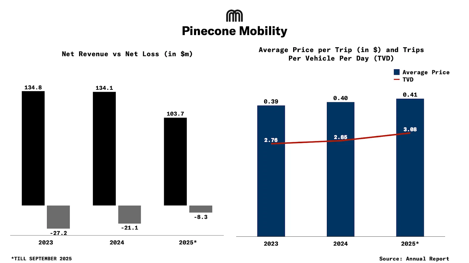 According to disclosures ahead of its IPO filing, Pinecone Mobility reported stable revenue of $103m in the first nine months of 2025. This is an increase from $131m in revenue in 2023 and $133m in 2024.