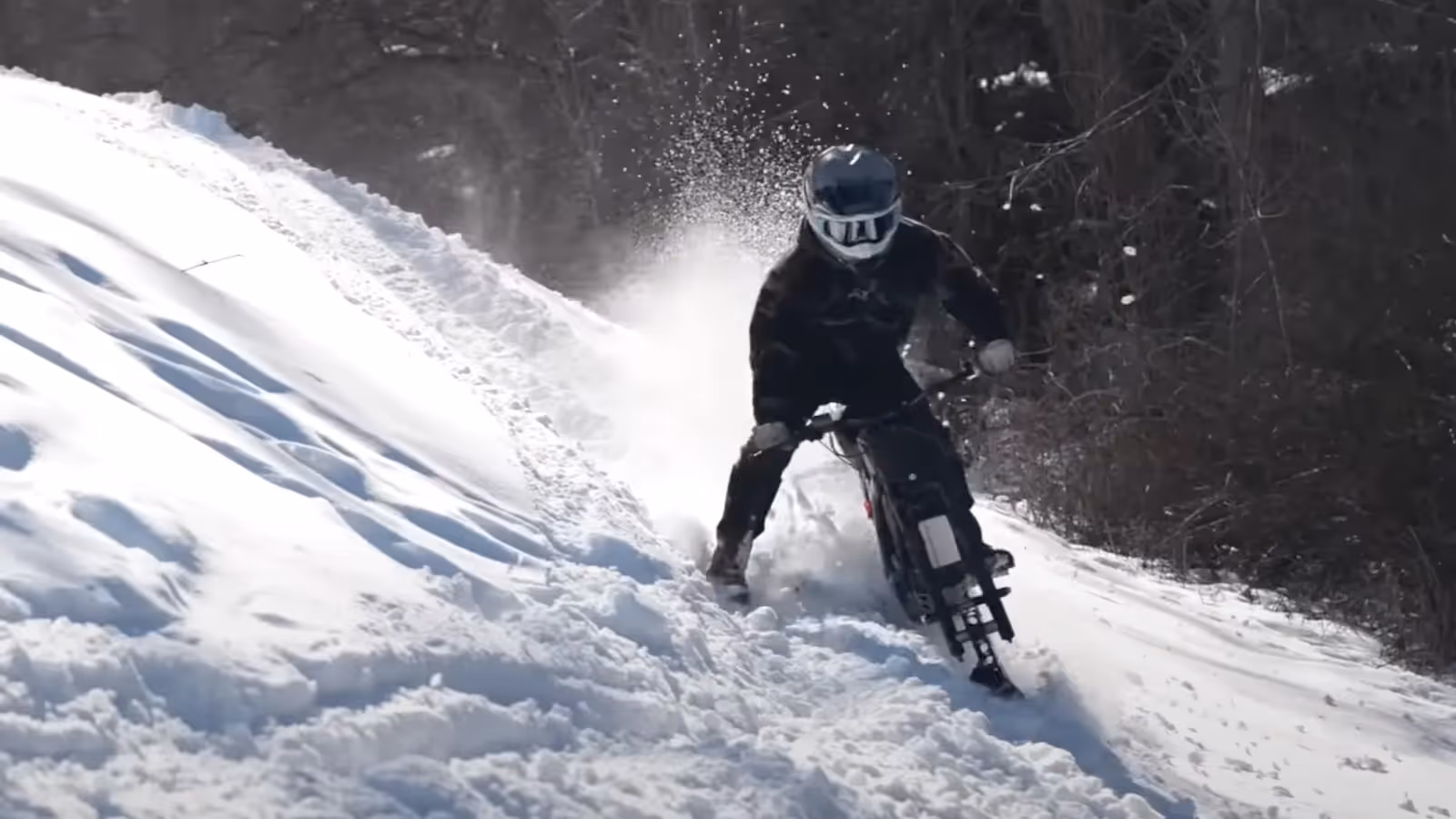 For most motorcycle riders winter means the end of riding season, but not for YouTuber Tyler Monagan, who converted his Sur-Ron X into a snow bike. It’s like a snowmobile, but much more agile and with a top speed of 50 mph (80 km/h).