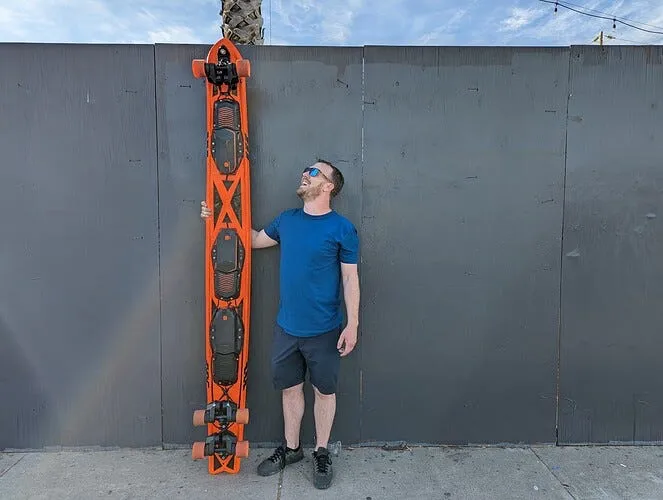 Also from Cody Hovland is this extremely long longboard. At 8 ft (2.44 m) long, it can fit six riders at once, and has enough torque to pull a Toyota Supra.