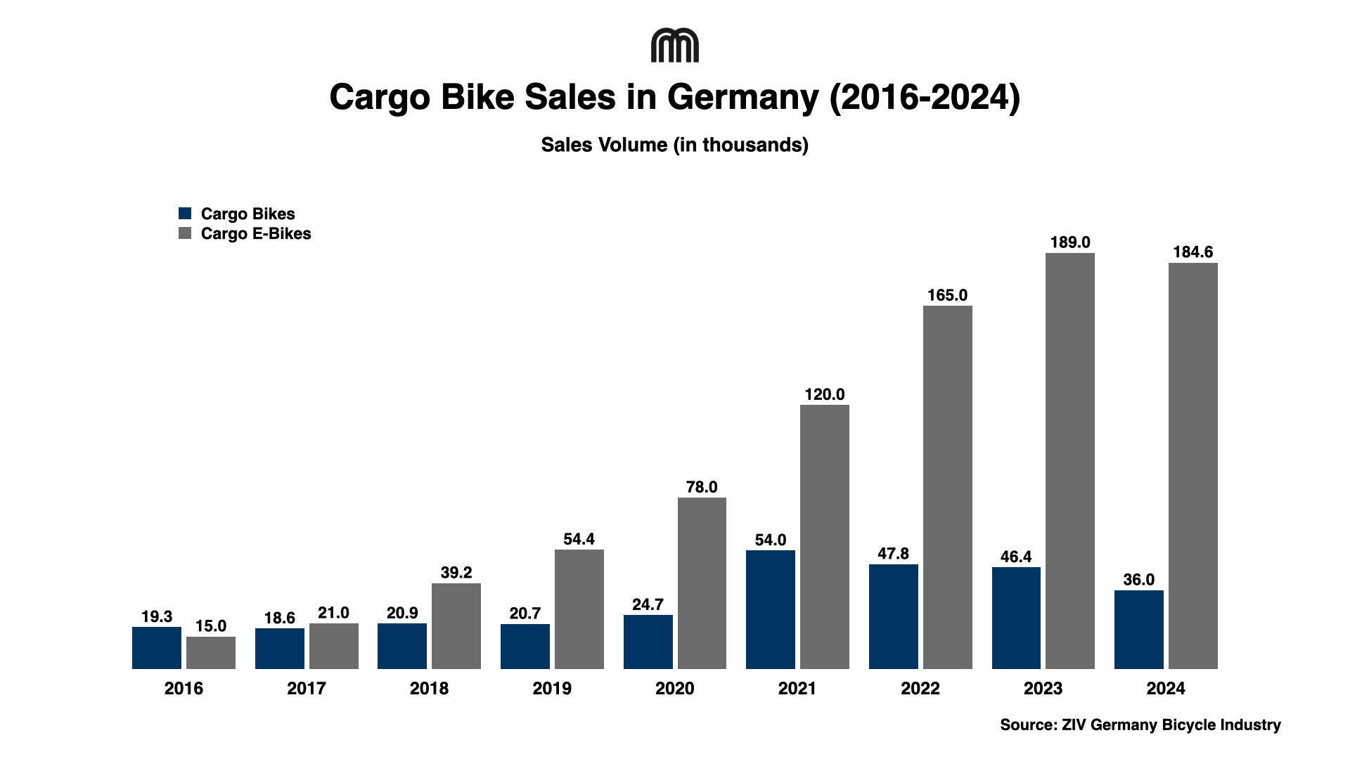 Germany has become Europe’s largest cargo bike market, driven by strong government support and commercial adoption. Annual cargo bike sales вырос from about 34k in 2016 to roughly 210k in 2024, with electric models accounting for the vast majority. Unlike the wider bike market, cargo e-bikes kept growing after the pandemic, rising to nearly 5% of all bicycle sales. Federal subsidies for businesses, local incentives, and large-scale logistics use by companies like parcel and delivery operators have turned cargo bikes into a serious alternative to cars and vans,making Germany the clear success story for cargo cycling in Europe.