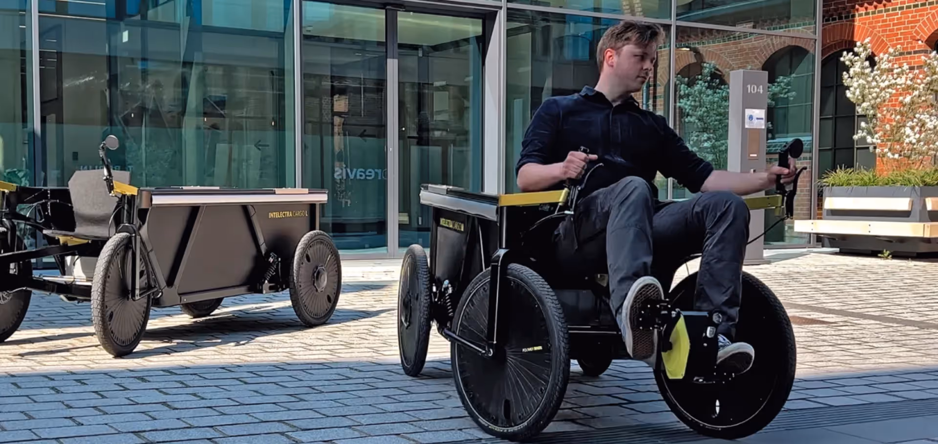 The new Intelectra quadricycle from German startup Dynamic Drives Giessen promises a 1000 lb (454 kg) load capacity for hauling commercial cargo. It also boasts an innovative pedal-by-wire drive system that eliminates the need for traditional gears, chains, and derailleurs, thus reducing maintenance needs and costs.