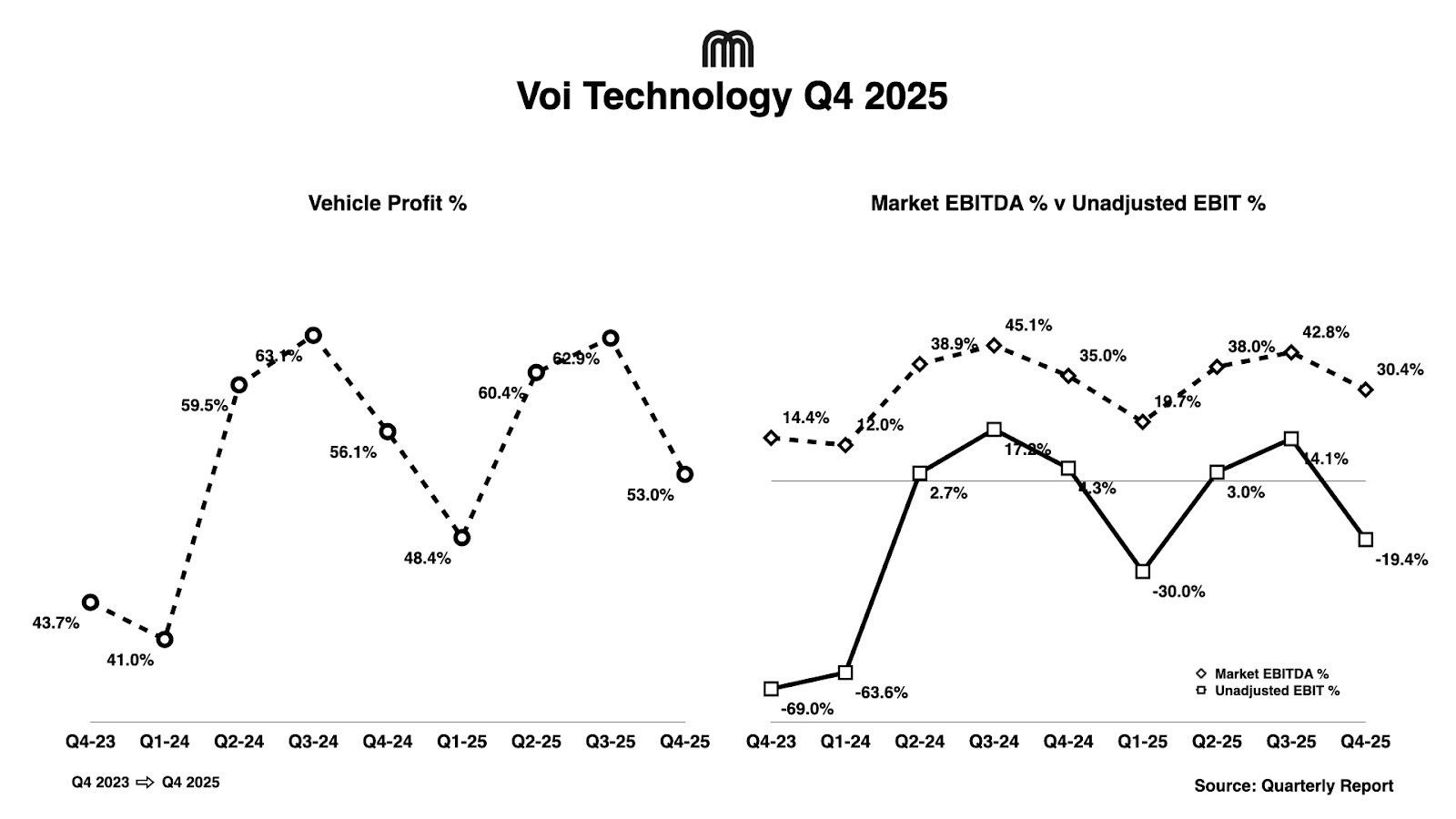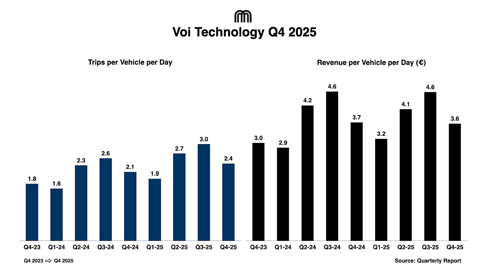Voi Technology published its Q4 and full-year 2025 results today, reporting net revenue of €178.2m for the year, the highest in the company’s history. The fourth quarter contributed €47.5m, representing a 45% YoY increase.