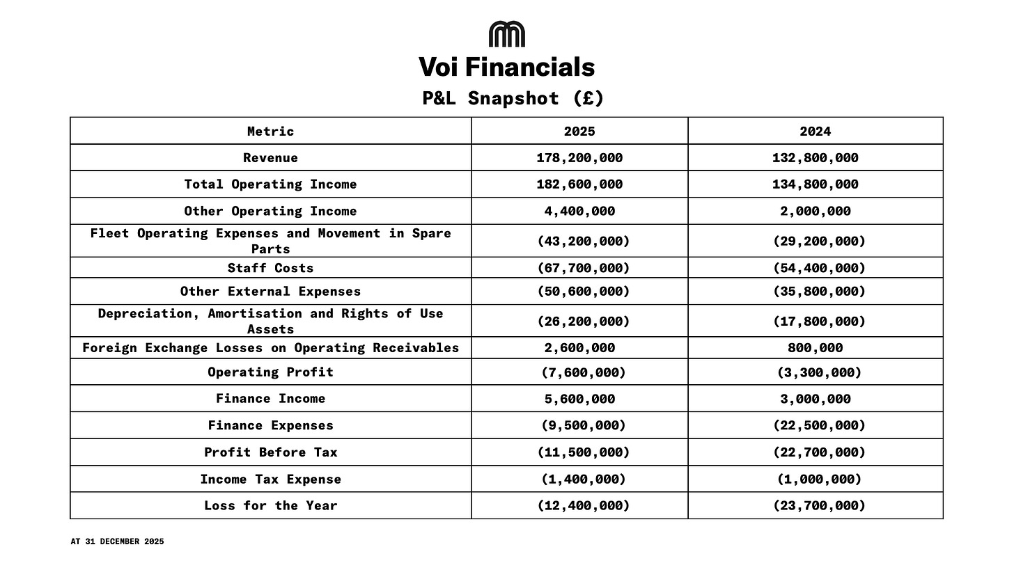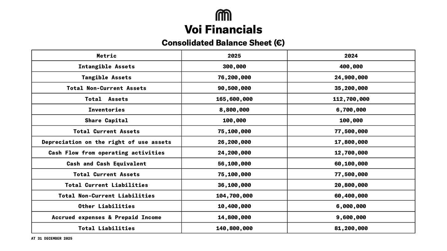 Voi ended the year with a cash balance of €56.1m, down slightly from €60.1m at the start of the year after absorbing significant fleet investment.