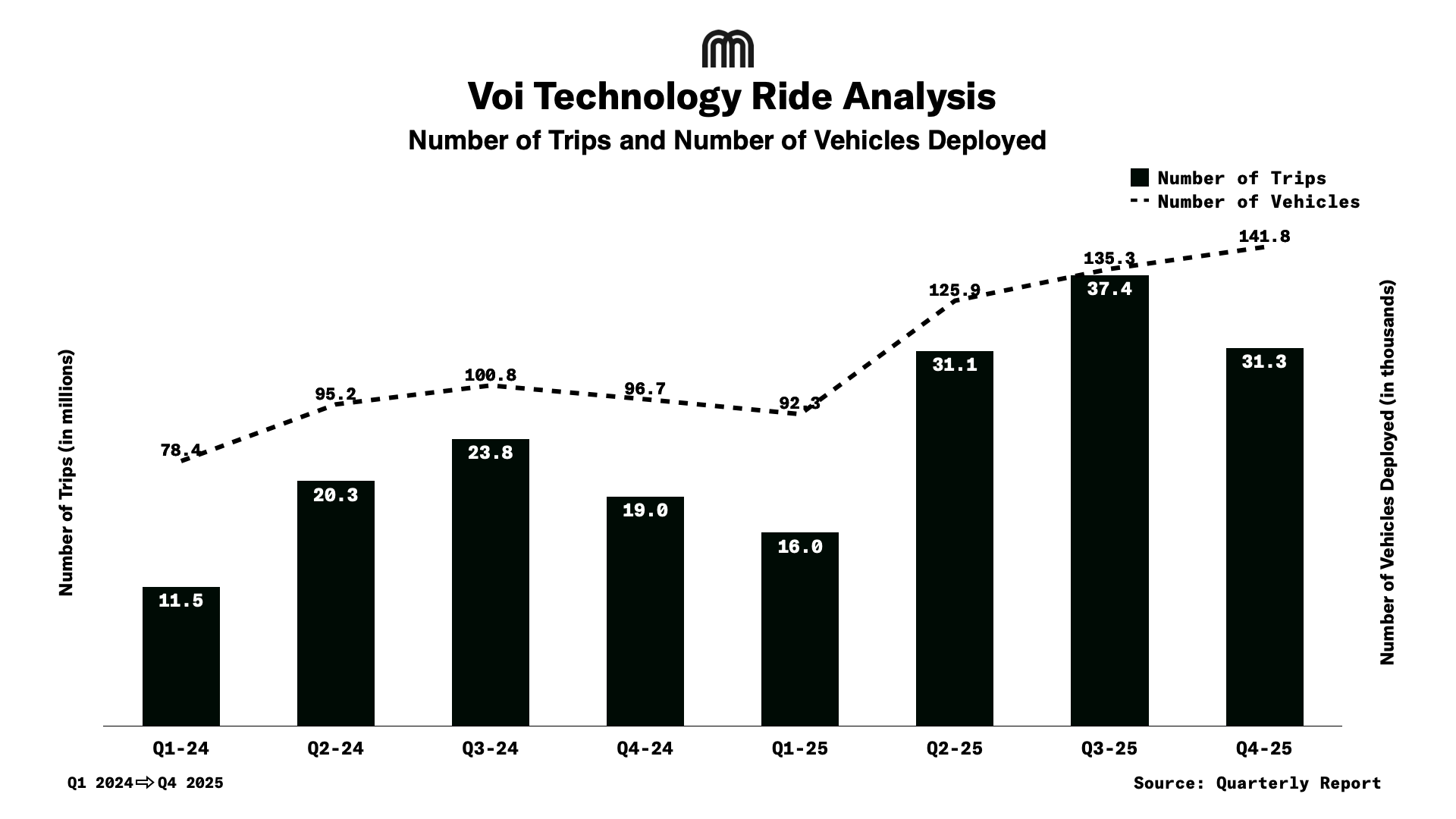 France is expected to continue its growth trajectory as a relatively underpenetrated market with significant room to expand. London is scaling. The e-bike fleet, which grew substantially in 2025, is expected to continue growing as Voi deepens its multi-modal capability across its network.