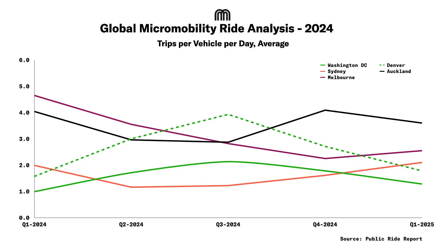 The 2024-2025 transition marks micromobility’s shift from scale to efficiency. Markets like Boulder and Auckland proved that optimized fleets (≤2,000 vehicles) with average TVD of 3.5+ outperform larger, underutilized operations. As Q1 2025 data shows, winners will be determined by utilization metrics, not sheer ride volume. The imperative is clear: rightsize fleets, target density hotspots, and transform seasonal vulnerability into year-round efficiency.