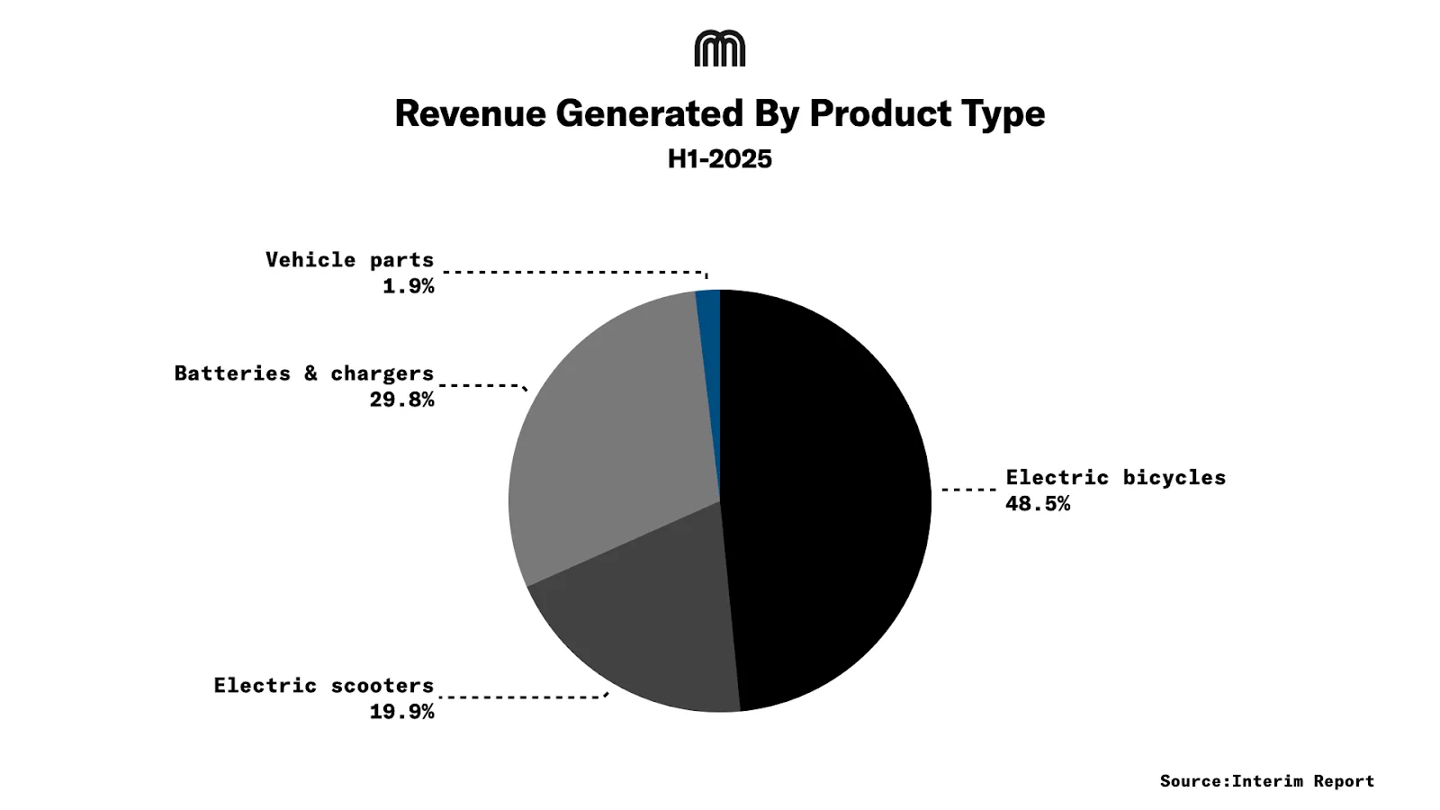 Electric bicycles were the core of Yadea’s business in the first half of 2025, accounting for nearly half of revenue: